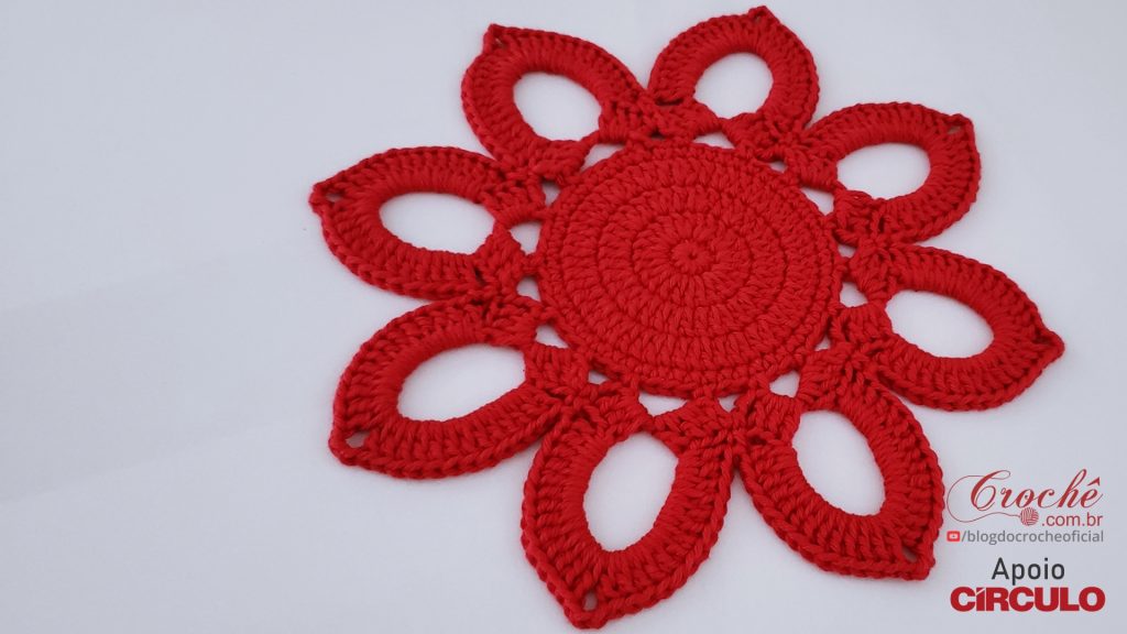 - Tamanho da flor: 28cm de diâmetro (pode fazer com qualquer fio caso queira menor)