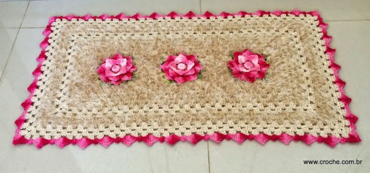Tapete retangular com Flor Mariana – Bico de acabamento passo a passo