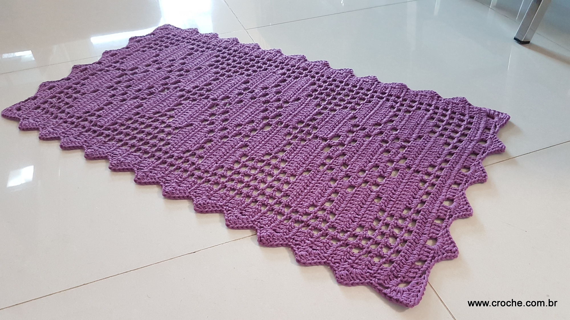 Este modelo de tapete é extremamente econômico, pois utiliza pontos vazados em forma de rede. Com cerca de 600g de fio, é possível produzir duas unidades desta peça, tornando-o um excelente item para venda ou para decorar sua casa com baixo custo.